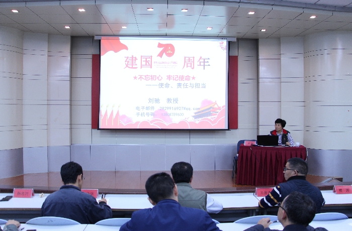 刘驰教授在讲座中,用其独特的语言魅力,结合1949年建国大阅兵、北京大兴国际机场、“杨善洲”蓝天访谈等视频资料,分别从沧桑巨变70周年;中国进入社会主义新时代;奋进新时代、成就精彩人生三个方面对我国发展取得的历史性成就和现实的历史性变革进行了深刻阐述,教育引导与会人员要不忘“初心”和“使命”,做到思想上与党同心、目标上与党同向、行动上与党同行,敢于担当、锐意进取、真抓实干、攻坚克难,为实现中华民族伟大复兴的中国梦作出我们应有的贡献!